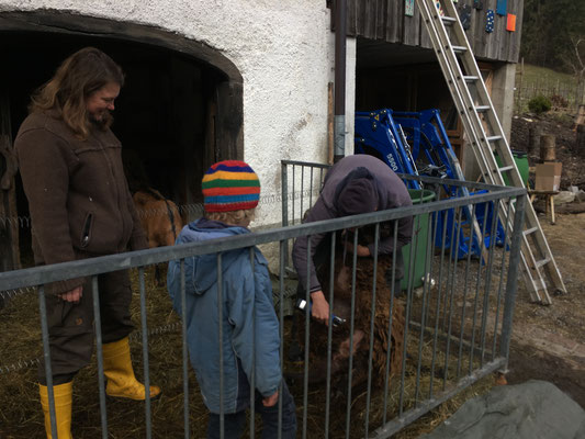 Der Tag begann heute früh wegen eines Problems. Gestern hatten wir vergessen die Bustür zu schließen. Und da es in der Nacht geschneit, und minus Grade gehabt hatte mussten wir den Schnee aus dem Bus kehren. Da wir schon draußen waren wurde die Gelegenheit genutzt um die Tiere zu versorgen. Dabei haben wir Rosalie die Katze gesehen die schon einen dicken Bauch hatte. Wir vermuteten, dass sie bald ihre Babys bekommen würde. Danach gab es erstmal Frühstück, bei dem alle sehr müde wirkten. Anschließend wurden die „Gruselarbeiten“ verteilt: Treppe putzen, Regal auswischen, Schnee schippen.