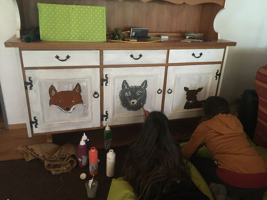 Wir holten lange Holzstangen aus dem Wald für die Stangenbohnen, Jojo und Leni malten den Schrank im Schwimmbad an, wir starteten den Grundputz in der Küche und im Seminarraum, genossen den freien Nachmittag und guckten uns am Abend den Film „Der Junge, der den Wind einfing“ an. Eine tolle Geschichte, wie die Idee eines Jungen, der Verstand für Technik und Natur hatte, ein Dorf vor einer Hungersnot rettete.