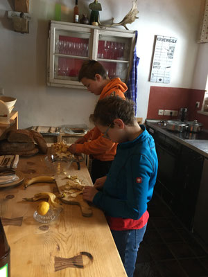 haben wir entspannt zusammen gefrühstückt. Dann hat jeder seine Dienste erledigt. Nachdem wir alle fertig waren, haben wir Mittagessen gekocht, es gab Lasagne mit Salat.
