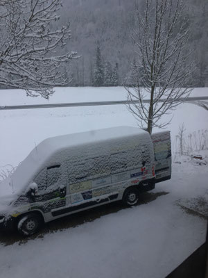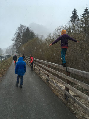 Nach dem Essen, hatten wir eine halbe Stunde Mittagspause. Nach der Pause sind wir raus gegangen, zuerst war es sehr sonnig aber am Ende hat es angefangen zu schneien.